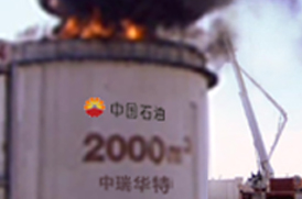 演习现场,一个表面积为80平方米、总容量达2000立方米的大型油池“突然”起火。风助火势,仅仅20秒后便已火光冲天,腾起的浓黑烟柱高达几百米。