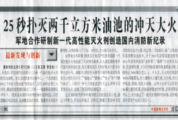 我国拥有自主知识产权的瑞特新一代高效能水系灭火剂创造了灭火种类最多、灭火速度最快等多项新纪录,标志着我国水系灭火剂研制水平已经跻身世界先进行列。